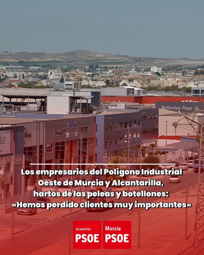 Lo advertimos… y no quisieron escuchar. Durante meses, desde el PSOE de Alcantarilla y de Murcia hemos denunciado los problemas de seguridad y convivencia en el Polígono Industrial Oeste.