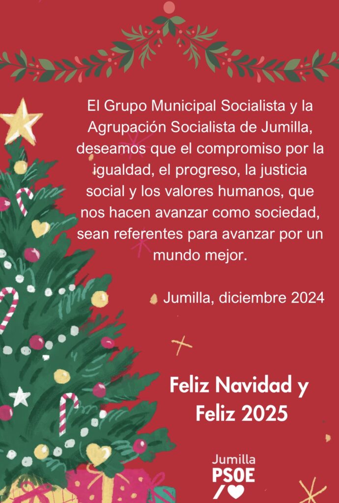 Año 2024 | Destacado Redes Sociales | Sin categoría Felicitación del Grupo Municipal Socialista 29 / 12 / 2024 Comparte esta noticia Palabra clave También te puede interesar... 10 / 10 / 2025 Jumilla obtiene otros 5 millones más de fondos europeos a través del Gobierno de España A finales de la semana pasada, se tuvo conocimiento de otra buena noticia para Jumilla procedente del Gobierno de España, en concreto del Ministerio de Hacienda. Ya se ha resuelto de forma provisional, la convocatoria por concurrencia competitiva para seleccionar los planes EDIL del periodo 2021-2027, que gracias a la mejor gestión por parte del ... Afíliate RRSS Visítanos en nuestras redes Tweets de PSOEJUMILLA Síguenos en Twitter Síguenos en Facebook