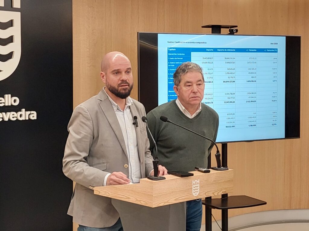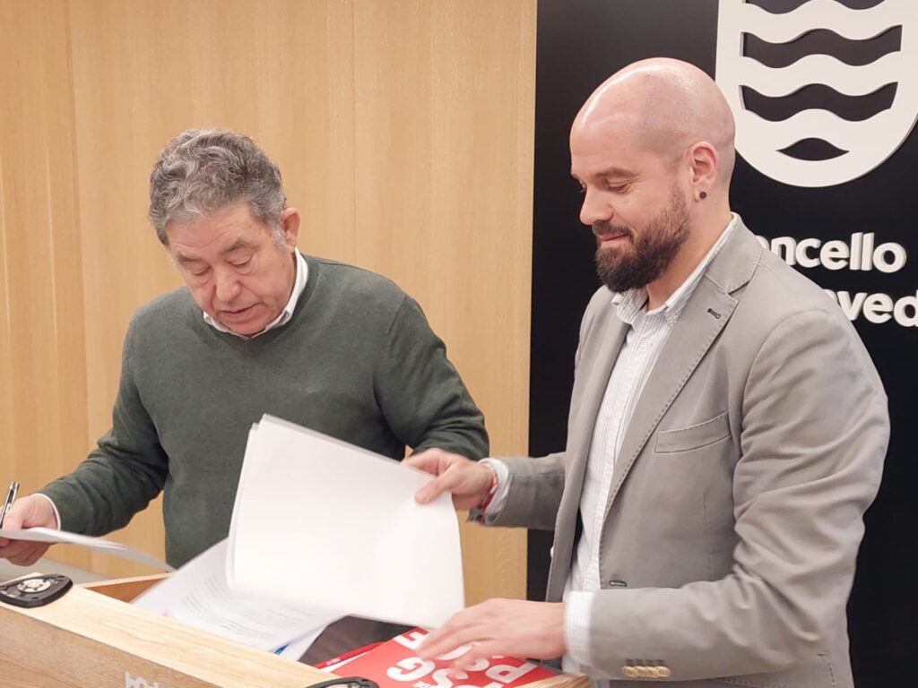 Pontevedra, mércores 28 de xaneiro.- O alcalde de Pontevedra, Miguel Anxo Fernández Lores e o portavoz do grupo municipal do PSdG-PSOE, Iván Puentes asinaron esta mañá o acordo para a aprobación dos orzamentos municipais de 2026, un documento económico que ascende a 103.768.000 euros, o que supón un incremento do 5,21% respecto das contas de 2025. Lores cualificou este proxecto de orzamento como o «máis grande da historia de Pontevedra», un crecemento que responde ao aumento da actividade económica e dos ingresos do Estado, pero tamén a unha xestión eficiente que permitiu reducir gastos financeiros «porque temos débeda cero». O obxectivo destas contas é «seguir avanzando na liña de facer de Pontevedra un referente» e manter uns servizos de «altísima calidade de vida».